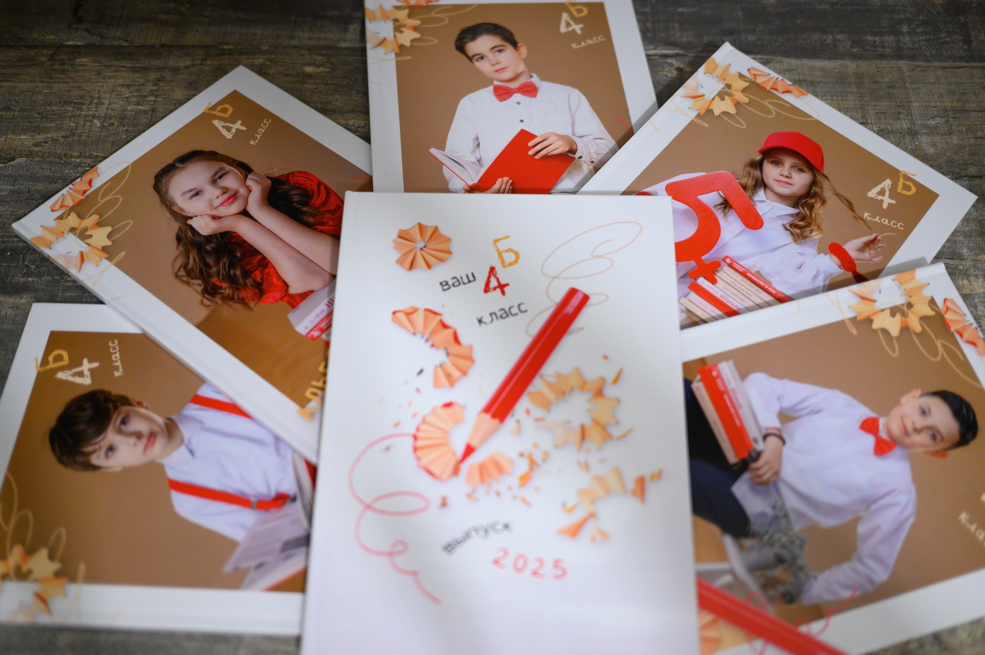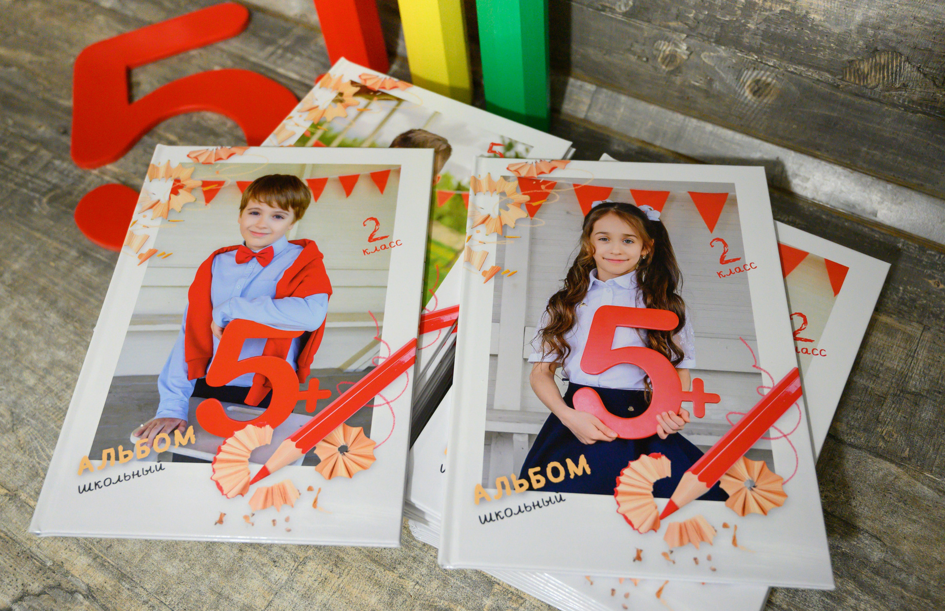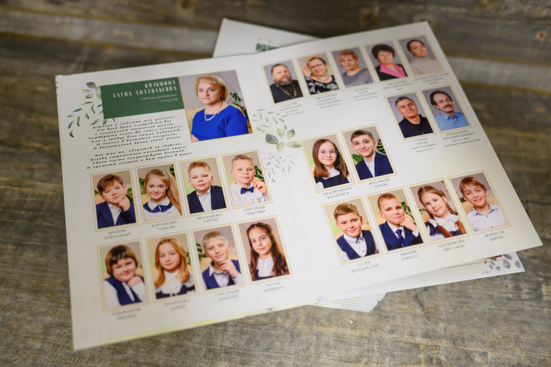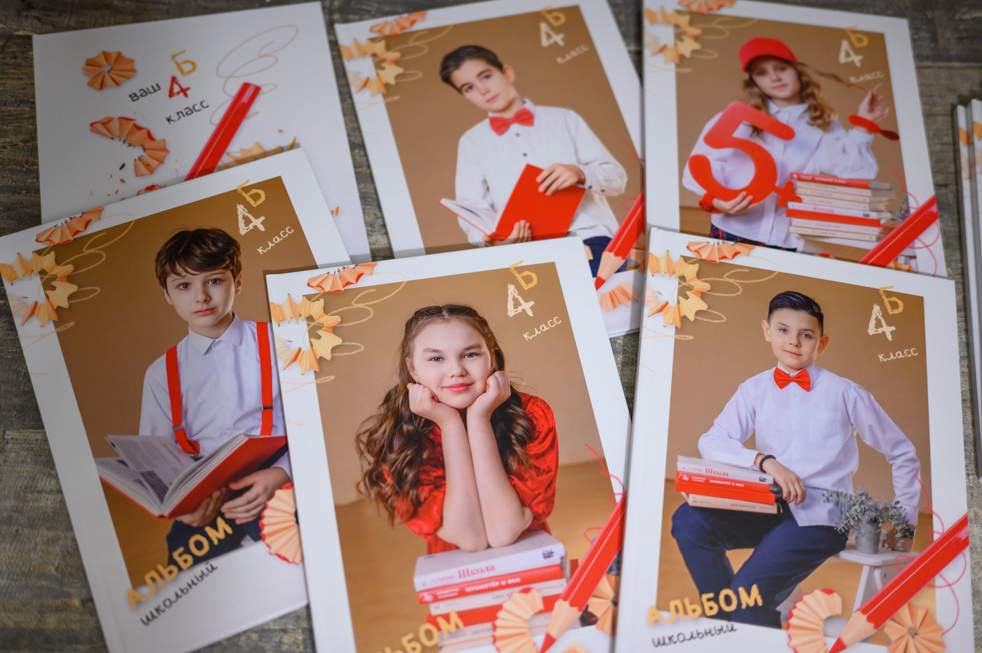 Большой полиграфический альбом (24-40 страниц) с единой версткой для всего класса— все альбомы абсолютно одинаковые для всех.