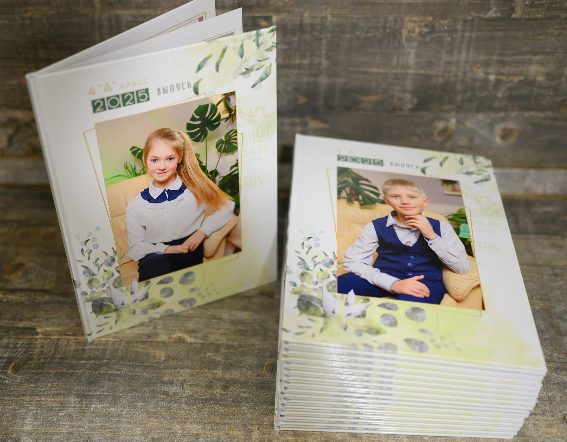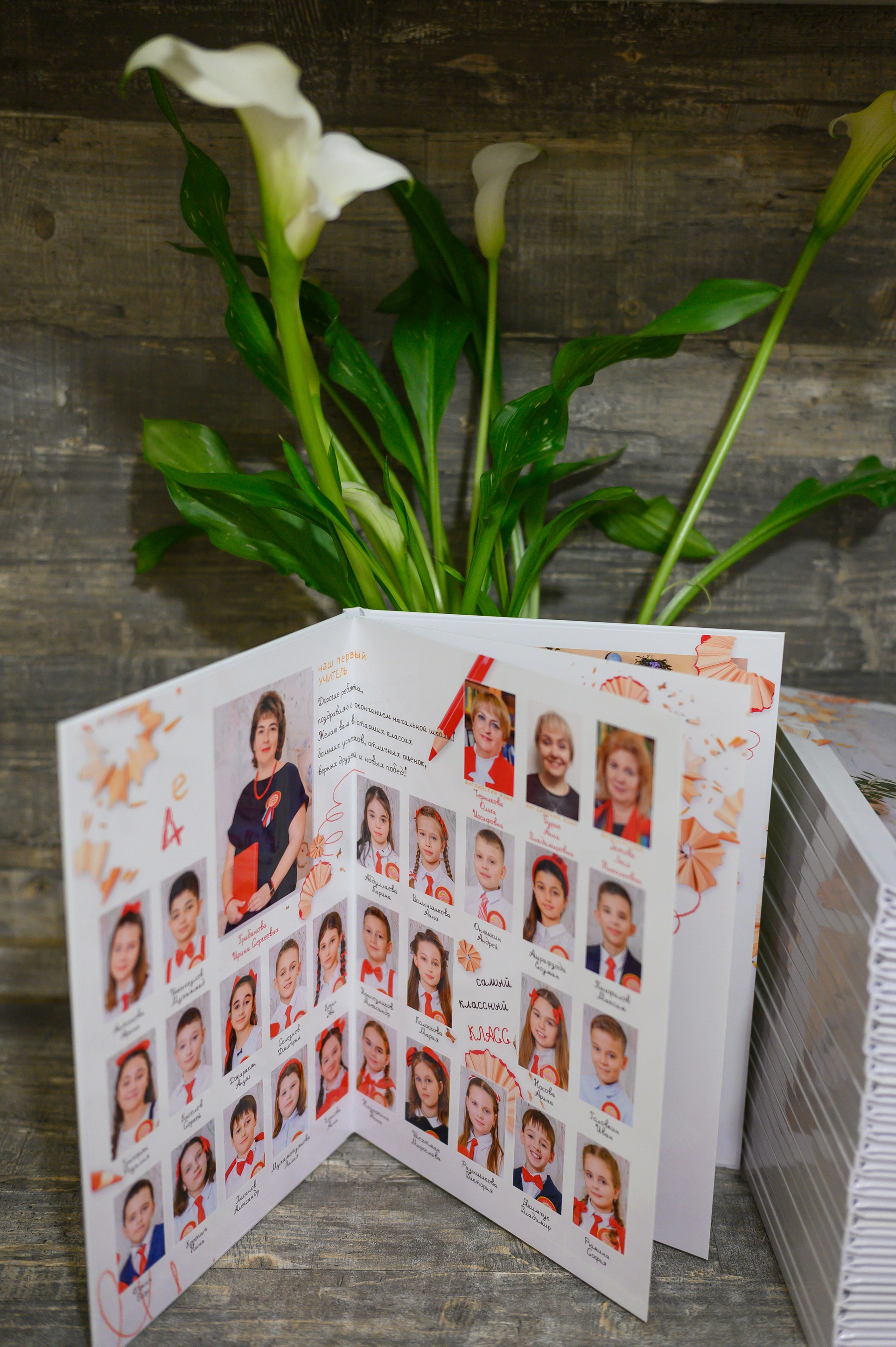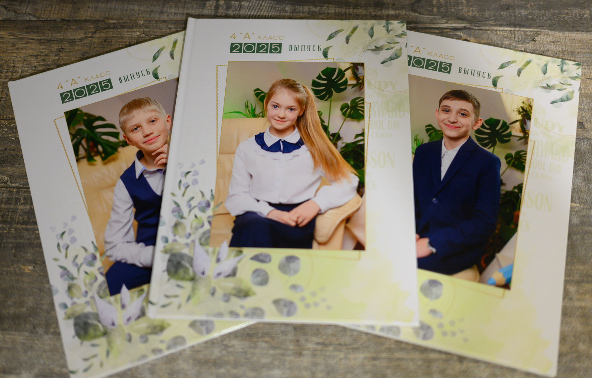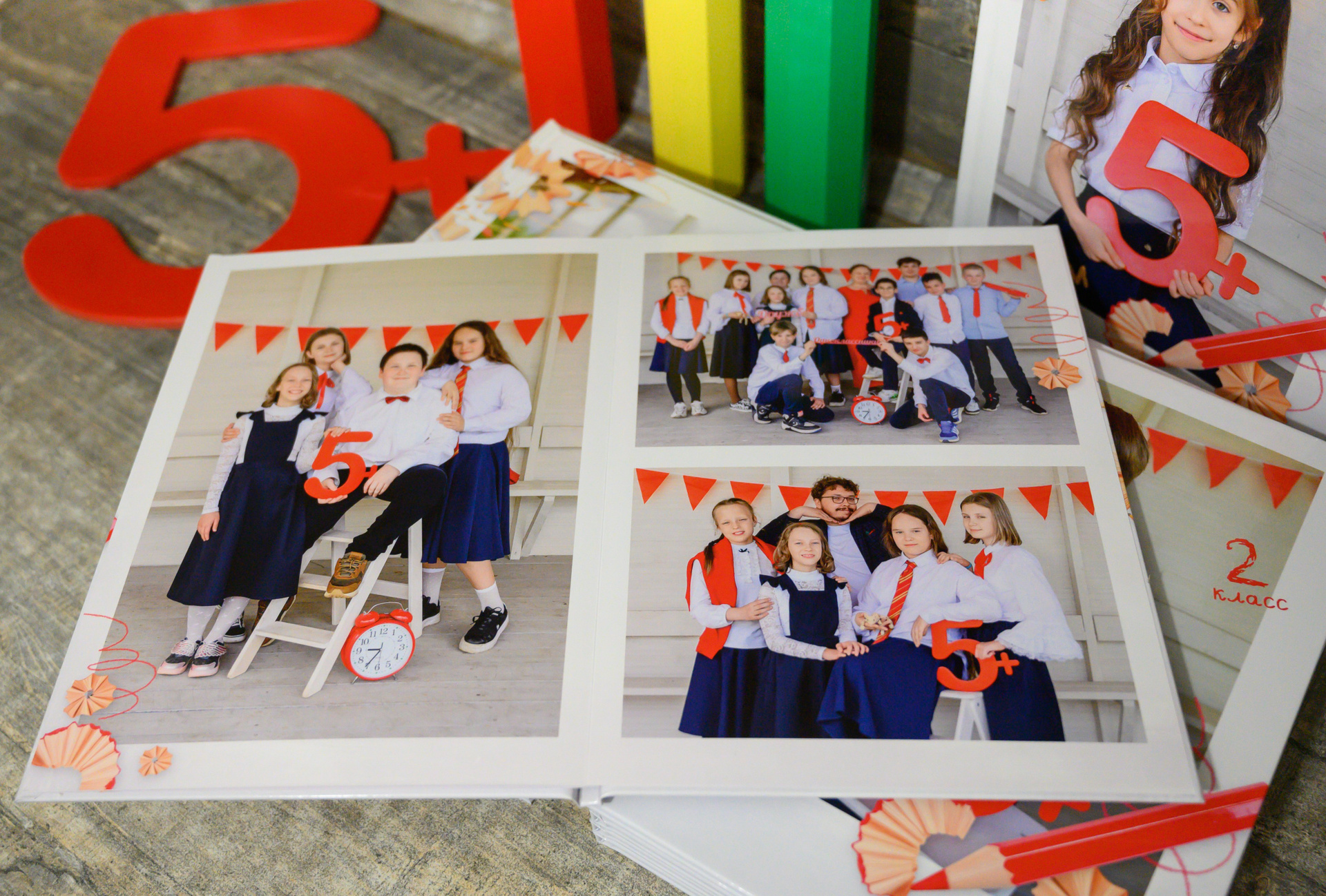 Большой полиграфический альбом (24-40 страниц) с единой версткой для всего класса— все альбомы абсолютно одинаковые для всех.
