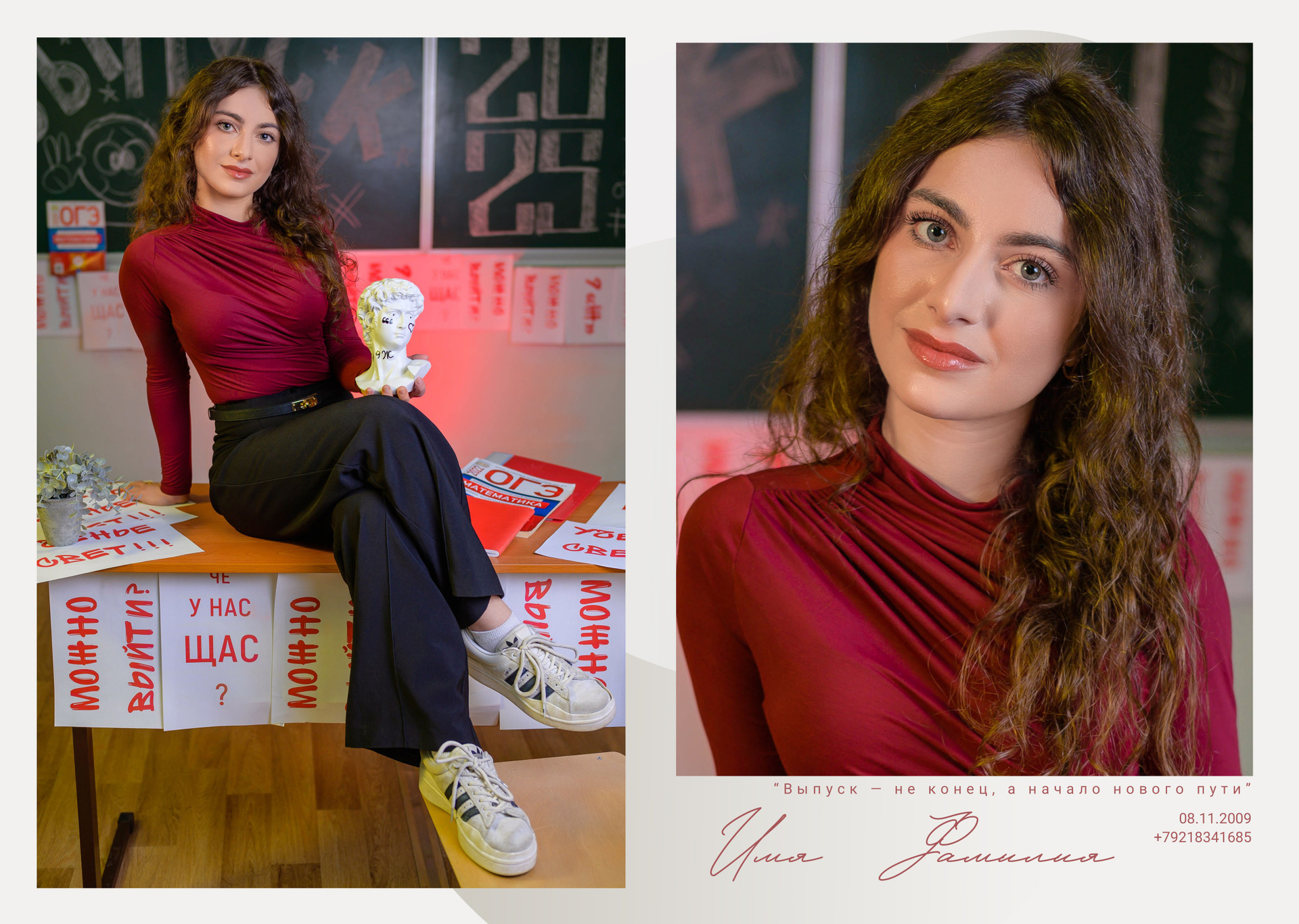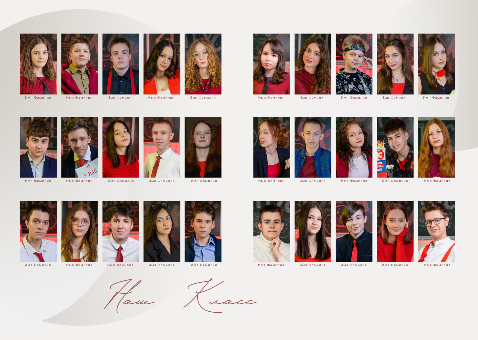 - разворот с виньеткой (портреты Классного руководителя и всех учеников с ФИО)
